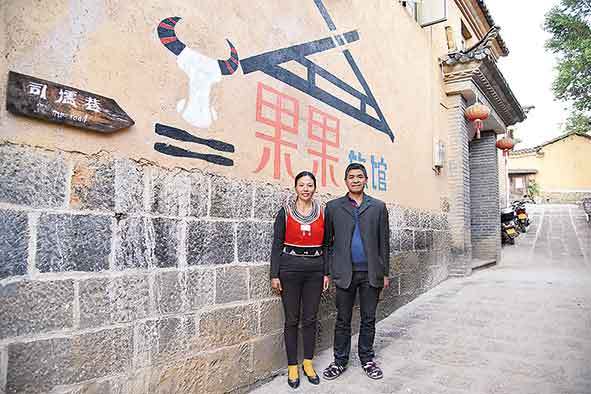 ▲2020年12月31日,中寨司莫拉佤族村村民李發果和丈夫在自家經營的旅館前。新華社記者林碧鋒攝