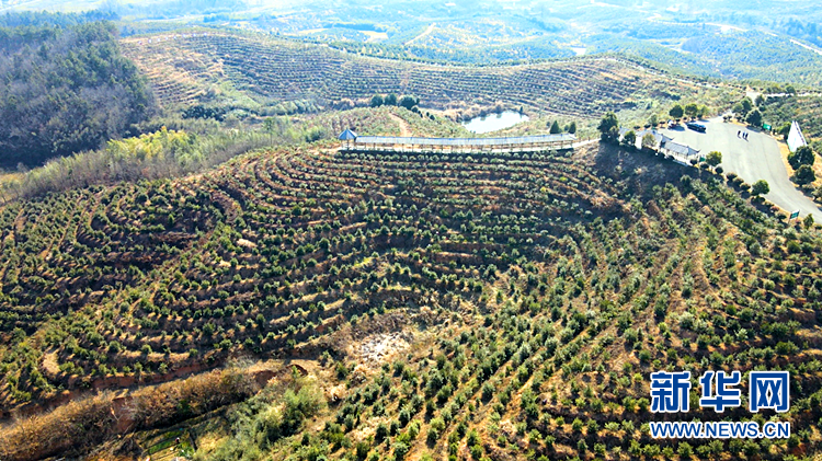 ????航拍六安市裕安區獨山鎮油茶產業脫貧示范基地。