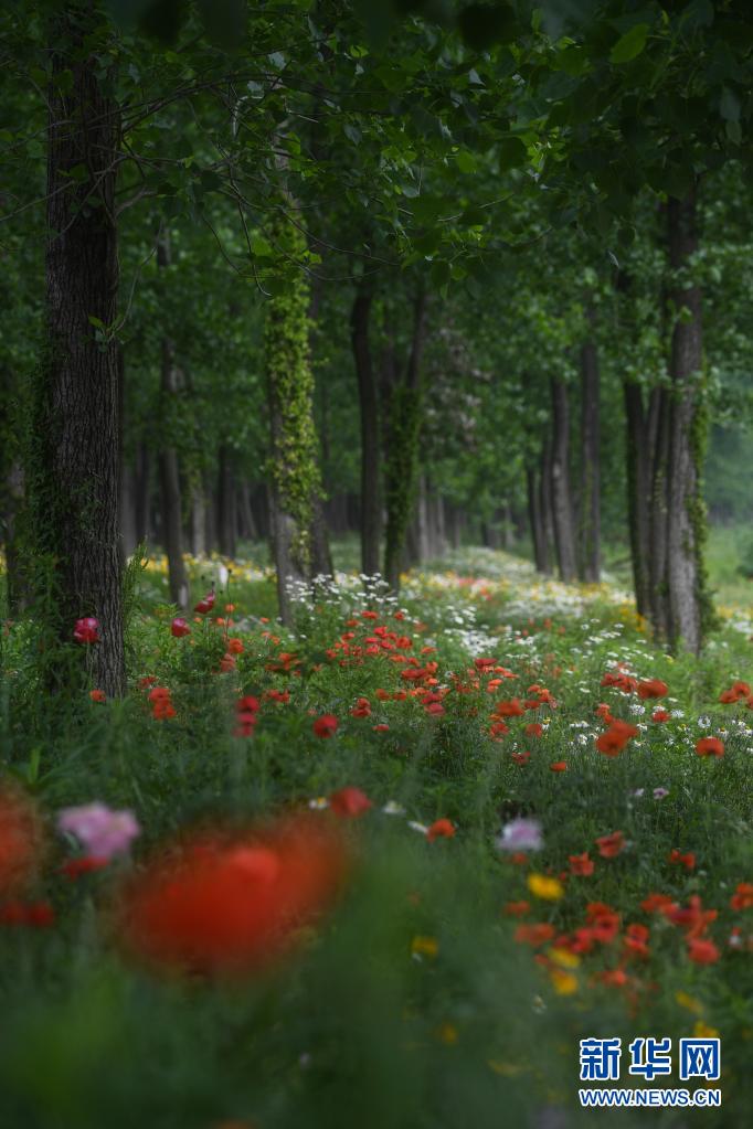 在東林鎮(zhèn)東升村,田野邊的樹(shù)林中鮮花盛開(kāi)(5月7日攝)。