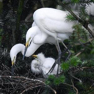 在南昌市新建區象山森林公園內,白鷺守護著雛鳥(5月18日攝)。
