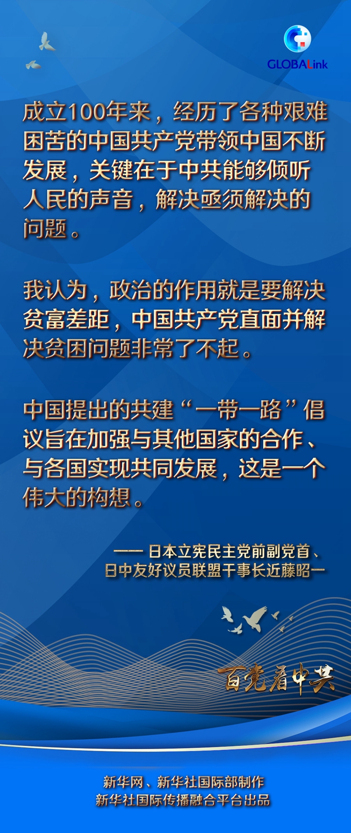 “在這100年中,中國共產黨黨員付出了巨大努力,取得了豐碩成果。”近藤表示。