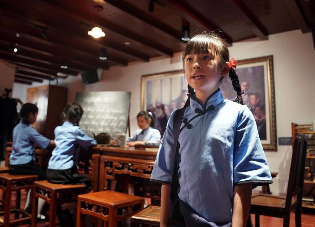 5月31日,全新布展提升后的中共四大紀(jì)念館重新開(kāi)館,首批“小紅花”小小講解員進(jìn)行了專(zhuān)場(chǎng)情景劇的首演。新華社記者 劉穎 攝