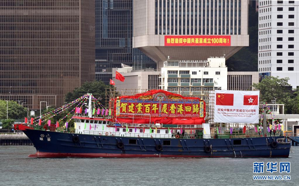 據介紹,今年“七一”,香港慶祝建黨百年、回歸24周年系列活動豐富多彩,包括100艘懸掛國旗、區旗的大型漁船在維港巡游,150輛車身印有主題標語的巴士、小巴穿梭在主要街區,全港多家戲院播放電影《1921》等活動。