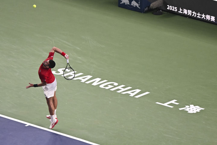 网球名将焦科维奇在2025ATP上海网球大师赛中发球。新华社记者陈浩明 摄