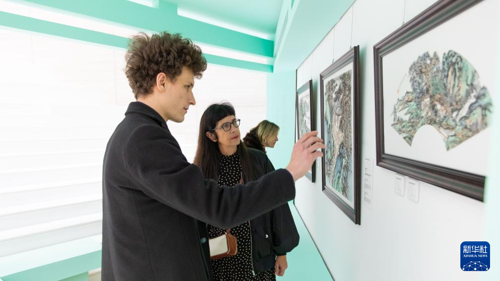 10月17日,人们在塞尔维亚贝尔格莱德的中国文化中心参观“山海志合——庆祝中塞人民友谊70年书画展”。新华社发(王韡摄)