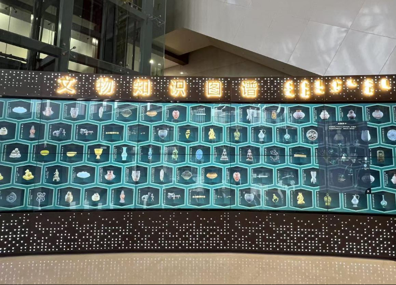 走进内蒙古博物院,一层大厅左手边的“文物知识图谱”墙便可作为游客了解博物馆的入口,通过触摸屏互动展示重点文物信息,系统以三维模型和高清图片形式呈现文物,游客可放大查看细节图案,了解文物间的逻辑关系网络,还可以扫描二维码,导航至实体展品位置。