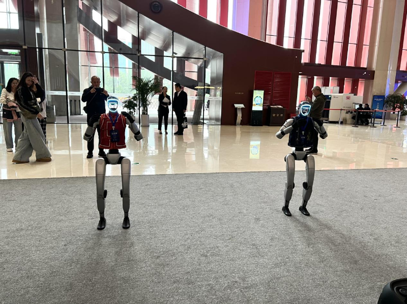 图为内蒙古博物院智慧馆员“巴特尔”和“高娃”在进行舞蹈展示。新华网 李世纯 摄