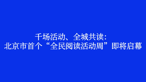 千場活動、全城共讀:北京市首個“全民閱讀活動周”即將啟幕