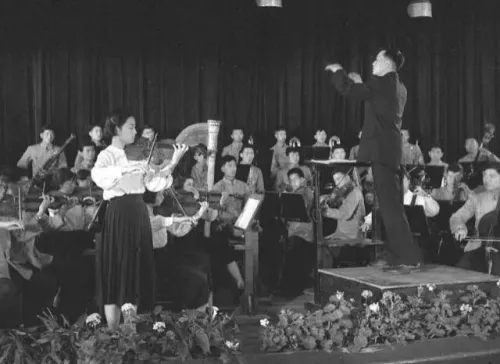 1959年5月27日,小提琴協奏曲《梁祝》在上海蘭心大戲院首演。指揮:樊承武 小提琴:俞麗拿