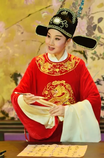 提到黃梅戲,經典名劇《女駙馬》是不可不提的重要作品。這部劇是黃梅戲最為著名的代表之一,塑造劇中“馮素珍”這個角色,需要表演者具備極強的專業功底與豐富的表演經驗。尤其是女扮男裝中狀元的這一場戲,演員要時刻注意心境的轉換,旦行與生行的靈活切換,采用戲曲程式化的動作把人物內心戲進行外化表現,讓觀眾跟隨演員的情緒而動。
