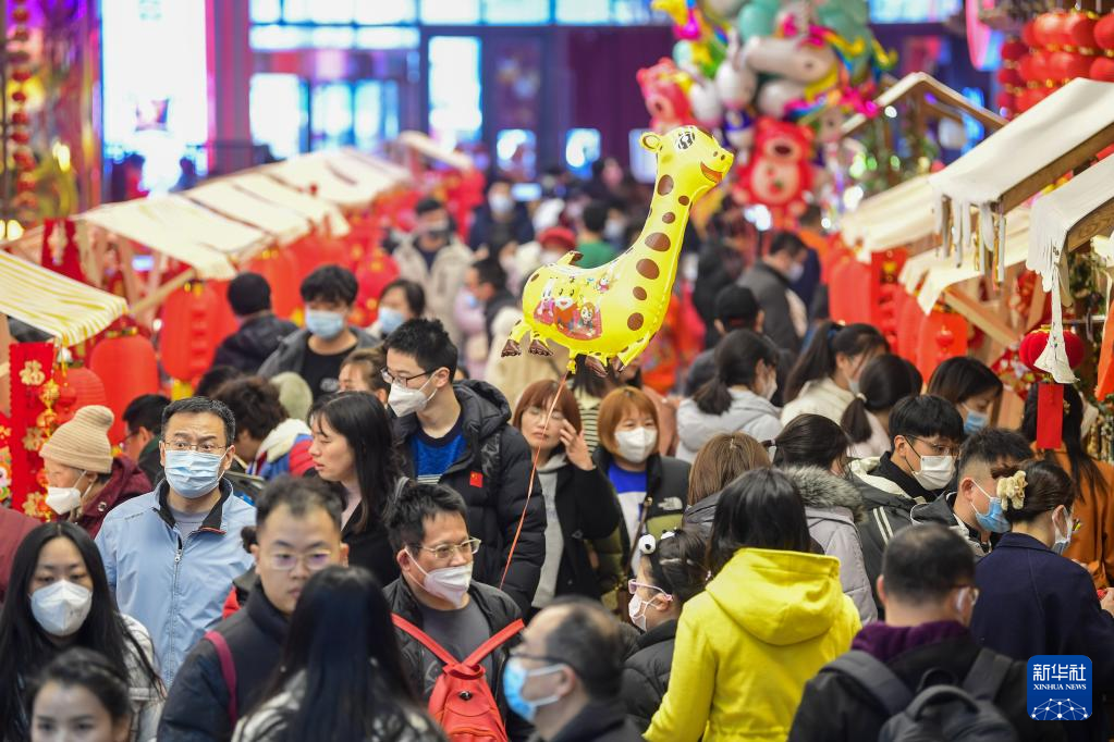 2月5日,人们在山东手造年货大集上游玩。