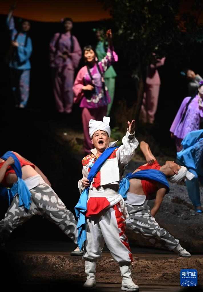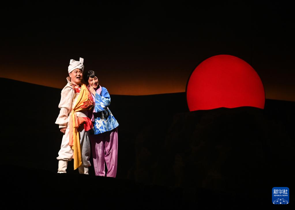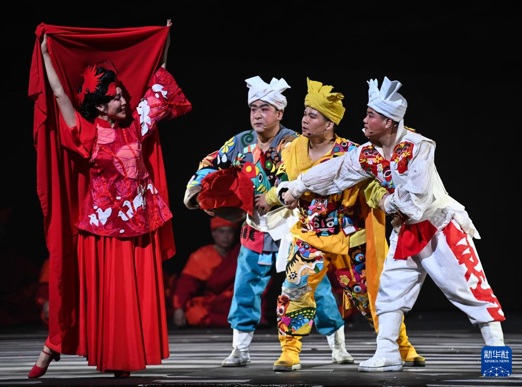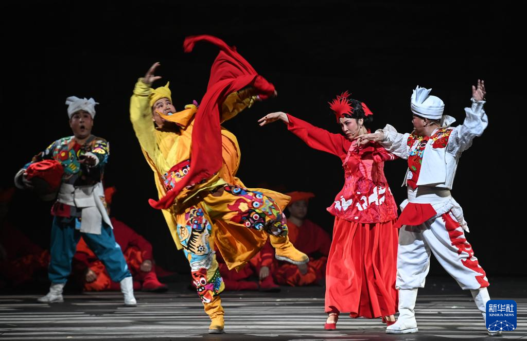 2月16日在首届中国非物质文化遗产保护年会展演活动上拍摄的陕北秧歌剧《米脂婆姨绥德汉》演出现场。