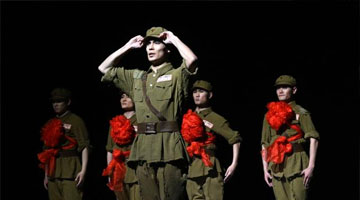 3月21日,在位于山东省济南市的山东省会大剧院,演员表演杂技节目《花木兰》。