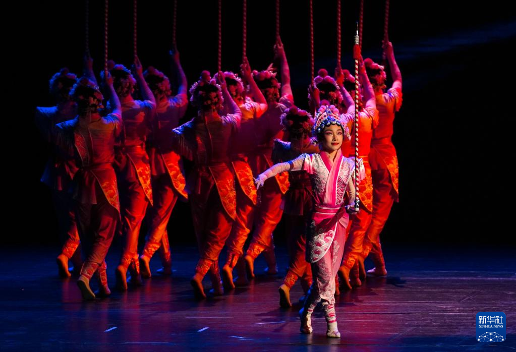 3月21日,在位于山东省济南市的山东省会大剧院,演员表演杂技节目《双人吊子》。