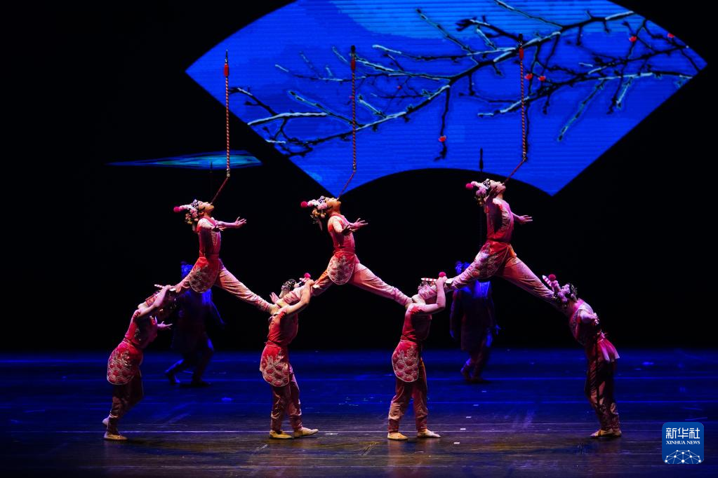 3月21日,在位于山东省济南市的山东省会大剧院,演员表演杂技节目《山之魂——高椅》。
