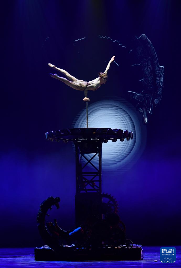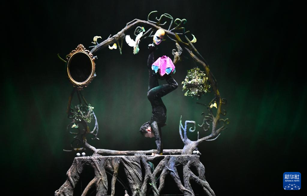 3月27日晚,在位于山东省济南市的山东剧院,演员表演杂技节目《弦》。