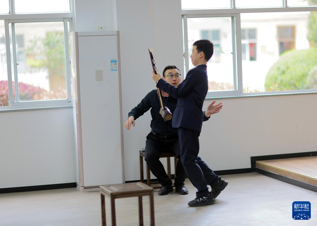 3月29日,在无锡市梅村实验小学,二胡老师范逸云为学生讲解演奏细节。