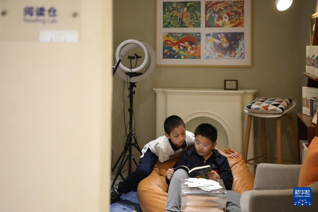 4月1日,在甘肃省兰州市的读者出版集团数字阅读中心读者小站,小朋友在多功能阅读仓读书。