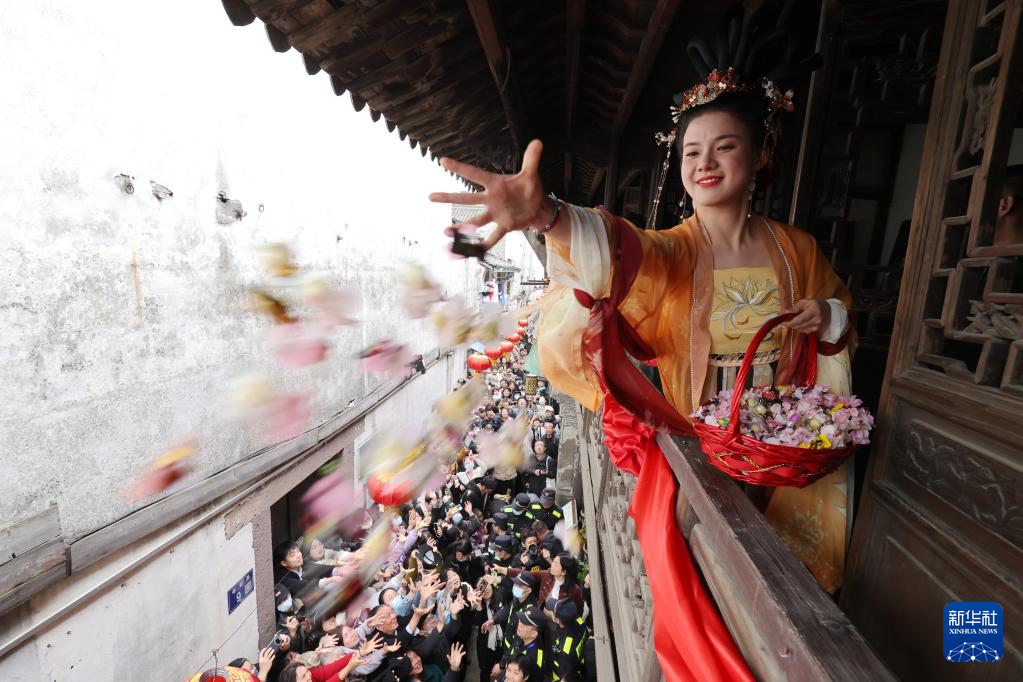 当日,浙江省湖州市德清县新市古镇举办第二十五届蚕花庙会,包括轧蚕花、祭蚕神、花轿巡游等多项民俗活动。