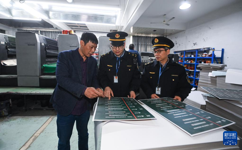 4月7日,诸暨市文化市场行政执法队的工作人员在检查印刷企业印刷品内容是否规范。