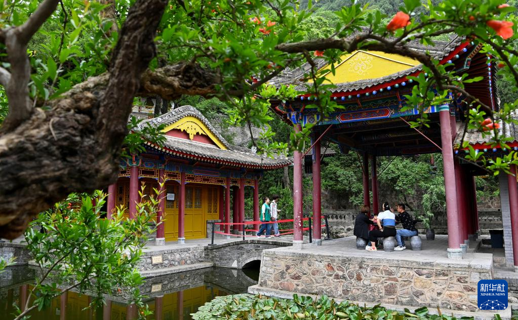 游客在西安华清宫景区尚食汤参观游览(5月5日摄)。