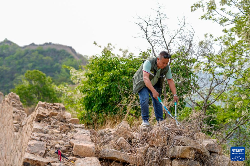 5月13日,赵春生在前后杖子段长城上清理垃圾。