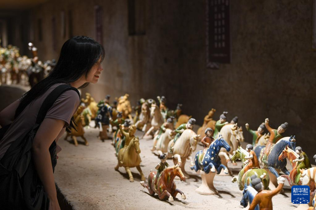 6月6日,游客在南石山村的唐三彩作品陈列展示馆内参观。