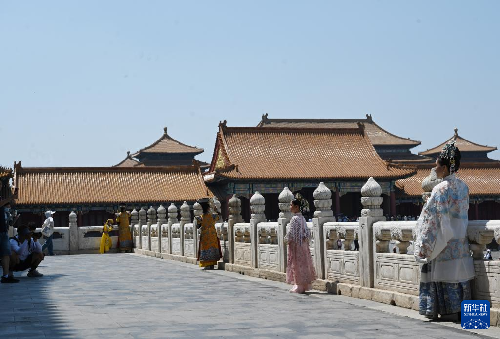 6月14日,一名摄影师(右一)在故宫内拍照。