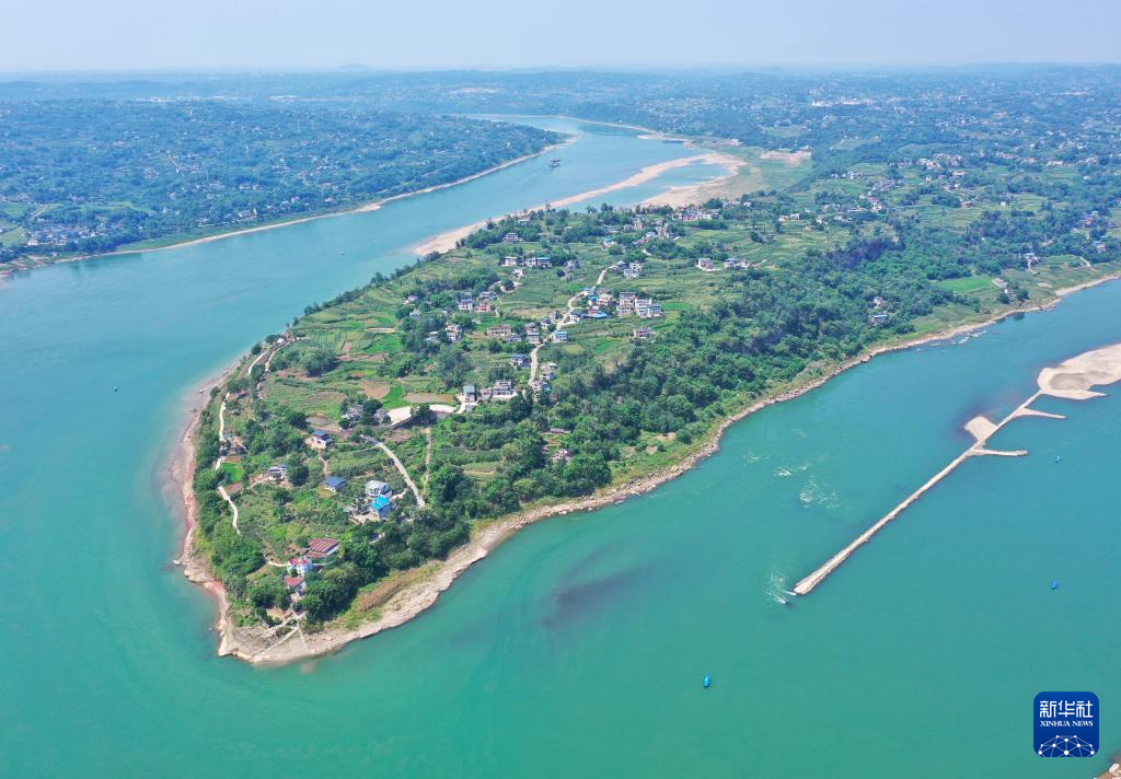 这是6月27日拍摄的神臂城全貌(无人机照片)。远处大桥为5月27日通车的神臂城长江大桥。