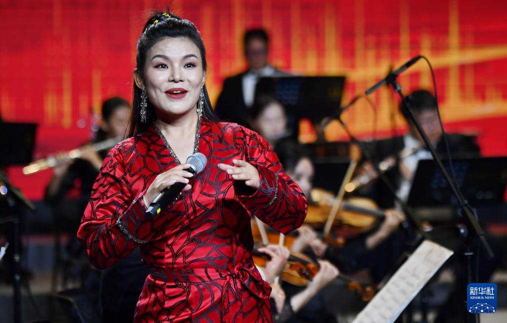 演员罗珍演唱《哈达的祝福》(7月18日摄)。