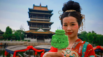 7月22日,游客在廊坊“只有红楼梦·戏剧幻城”戏剧主题公园参观。