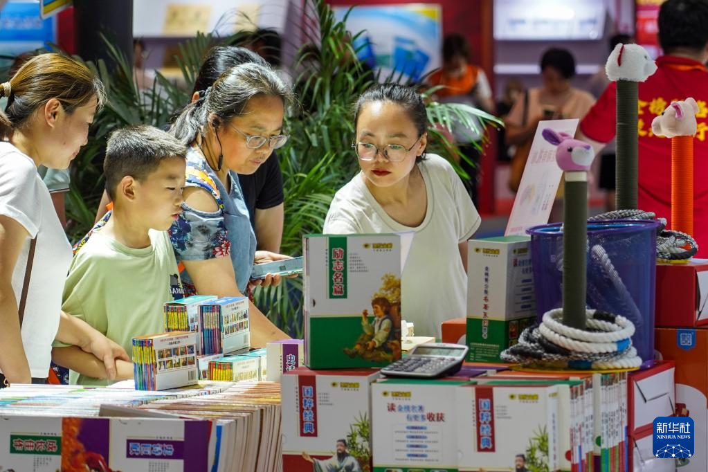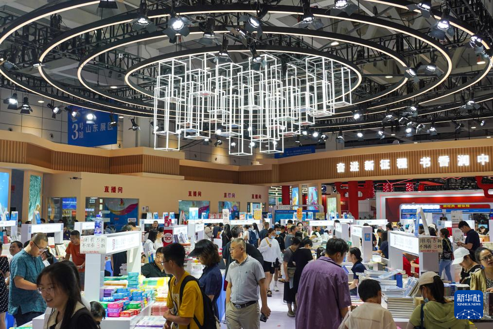 连日来,在山东济南举行的第31届全国图书交易博览会吸引了大批读者前来阅览选购。本届书博会以“奋进新征程 书香润中华”为主题,来自全国各省(区、市)和港澳台的1700多家出版印刷发行单位参展,线上线下共展出各类出版物70多万种。