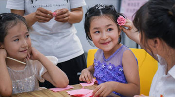 7月30日,一名游客在坡芽村坡芽传习馆内体验壮族织布。