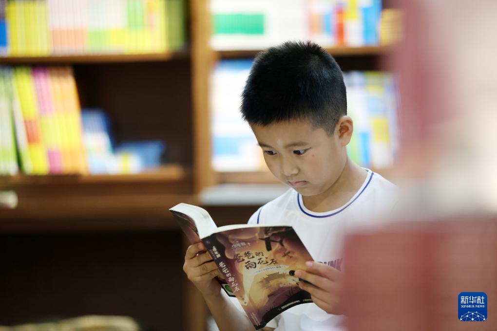 8月1日,一名学生在河北省遵化市新华书店阅读。