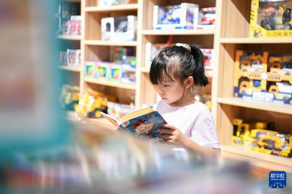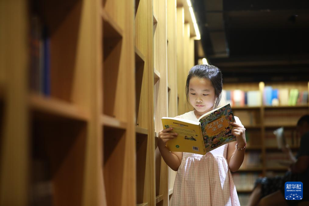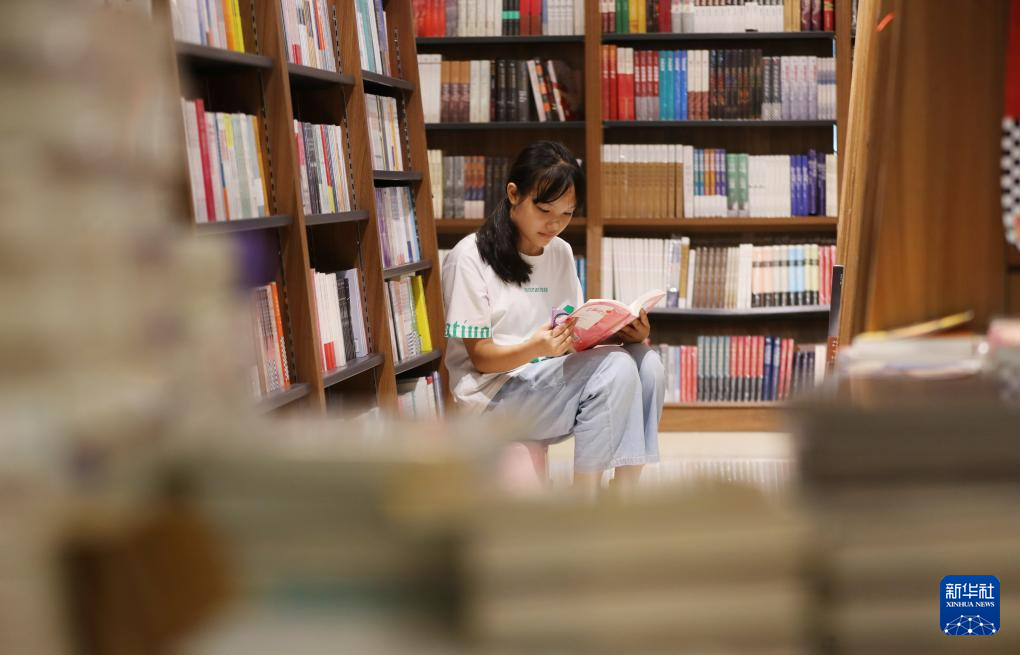 8月1日,一名学生在湖南省衡阳市衡阳县一家新华书店阅读。