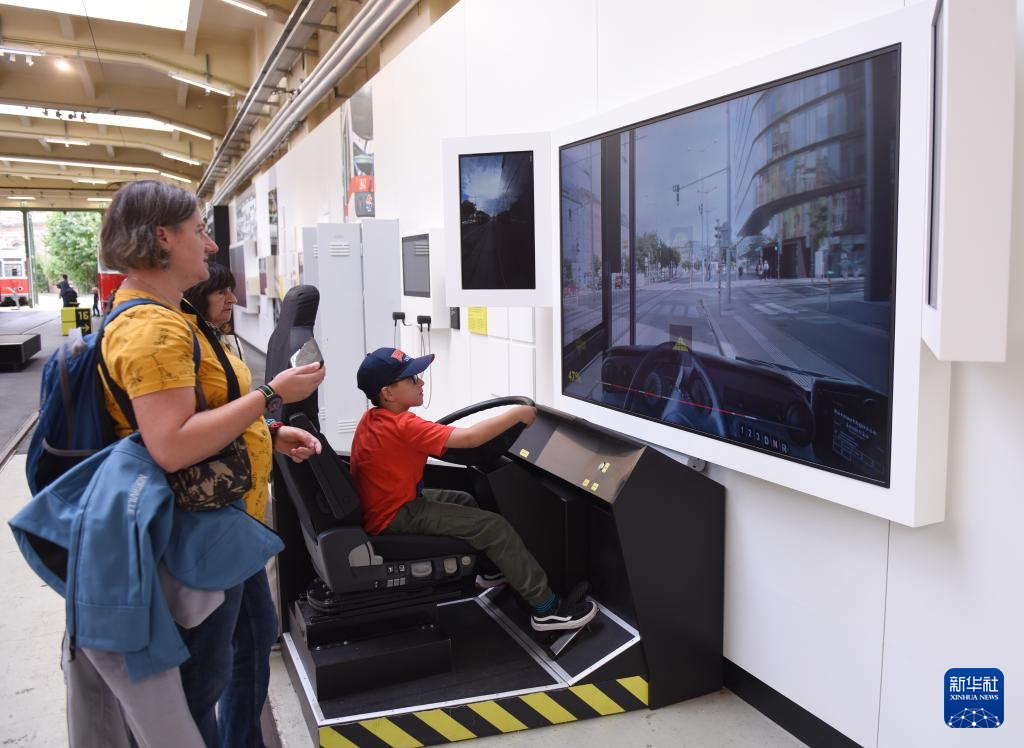 8月30日,在奥地利维也纳交通博物馆,观众模拟体验有轨电车驾驶。