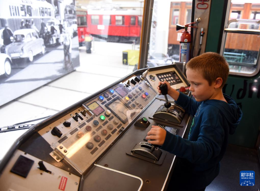 8月30日,在奥地利维也纳交通博物馆,一名男孩体验地铁列车的驾驶室。