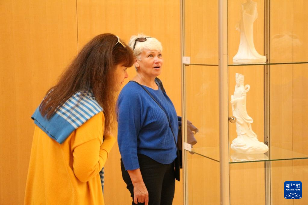 8月29日,参观者在德国法兰克福的“中国白·德化瓷”国际巡展上欣赏展品。新华社发(李帅摄)
