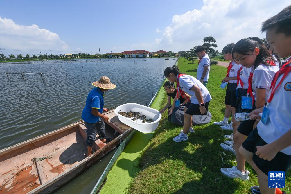 9月6日,太湖小学的学生们参观湖州市高新区杨溇村杨桂珍大闸蟹产业基地。