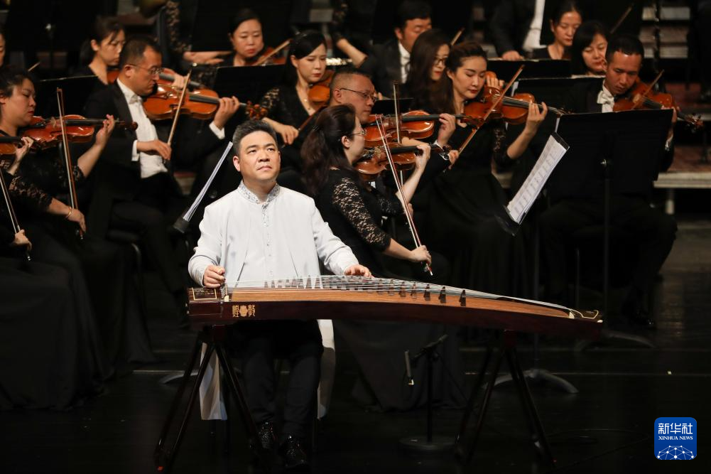 9月6日,古筝演奏家王中山在金钟之星“一带一路”民族音乐会上演出。