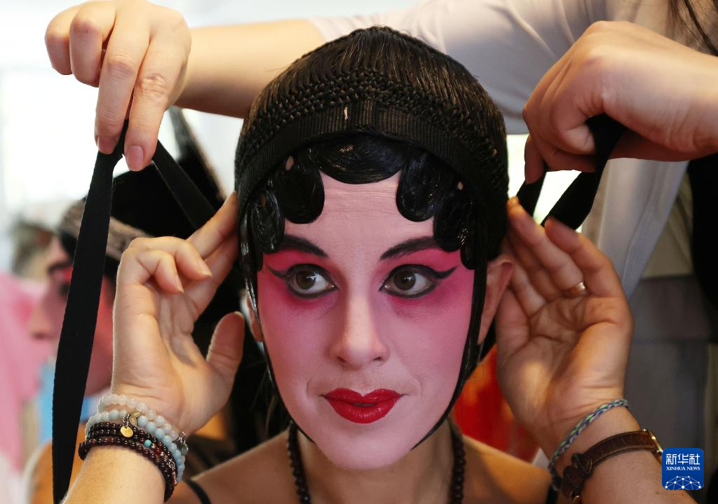 9月9日,在法国巴黎中国文化中心,法国观众体验昆曲旦角扮相。新华社记者 高静 摄