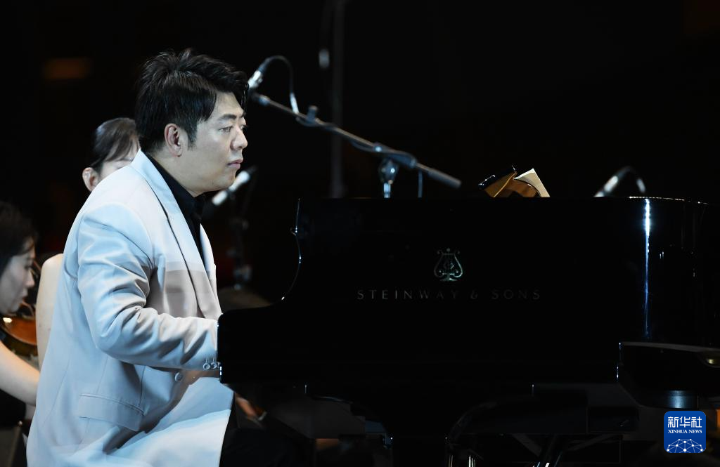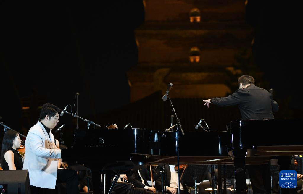 9月10日晚,钢琴家郎朗与西安交响乐团在西安大雁塔北广场户外公演。