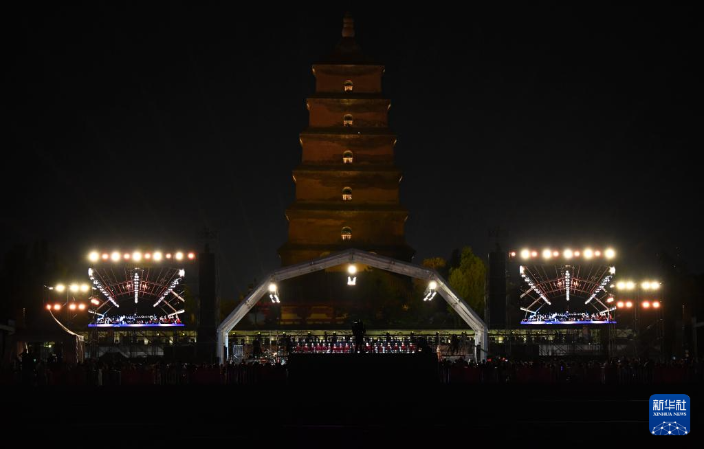 9月10日晚,西安交响乐团在西安大雁塔北广场户外公演。