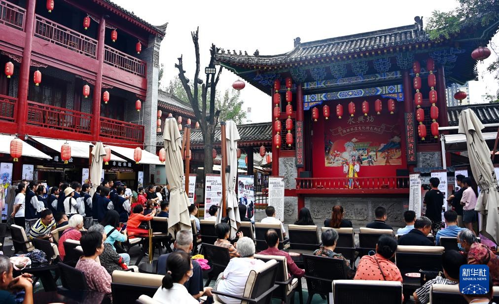 9月12日,西安市新城区“遇见城墙·非遗韵”非遗集市上,观众在欣赏秦腔表演。