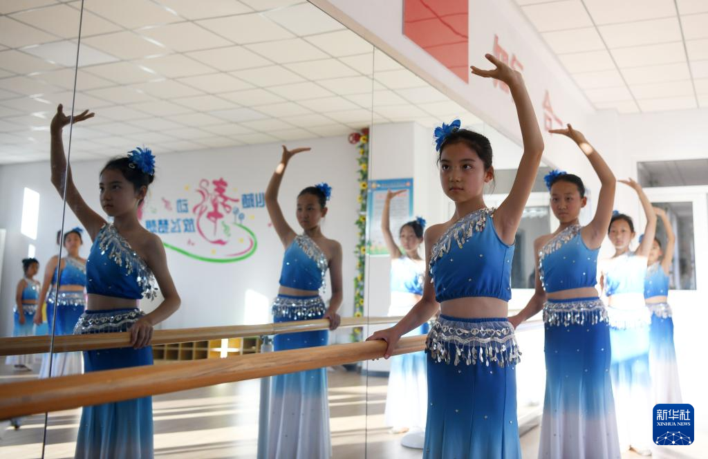 9月13日,在承德市双桥区会龙山小学,学生练习舞蹈。