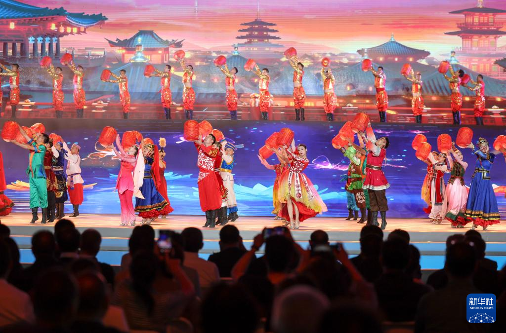 演员在表演各民族联舞《舞动天山》之群舞《中华民族一家亲》(9月12日摄)。