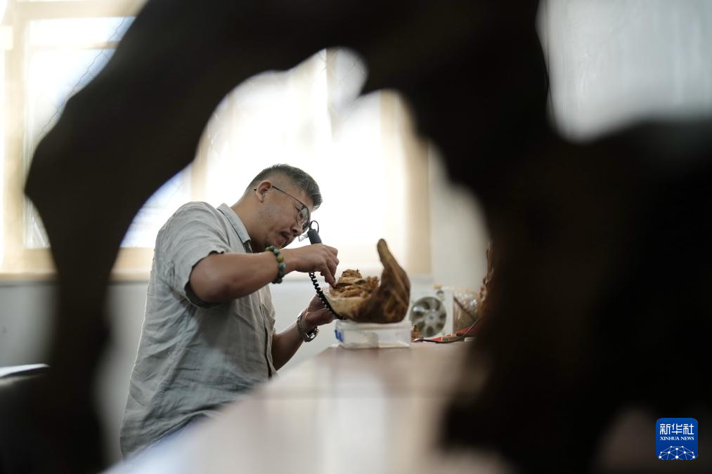 9月16日,玉田泥塑艺人在玉田县“非遗会客厅”工作室内制作泥塑。