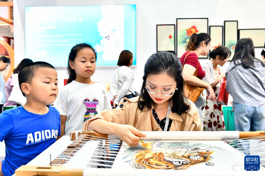 9月16日,在山东国际会展中心,来自湖南的非遗传承人现场展示湘绣技艺。