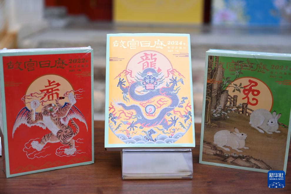 这是在故宫拍摄的2022年、2023年、2024年《故宫日历》(9月19日摄)。