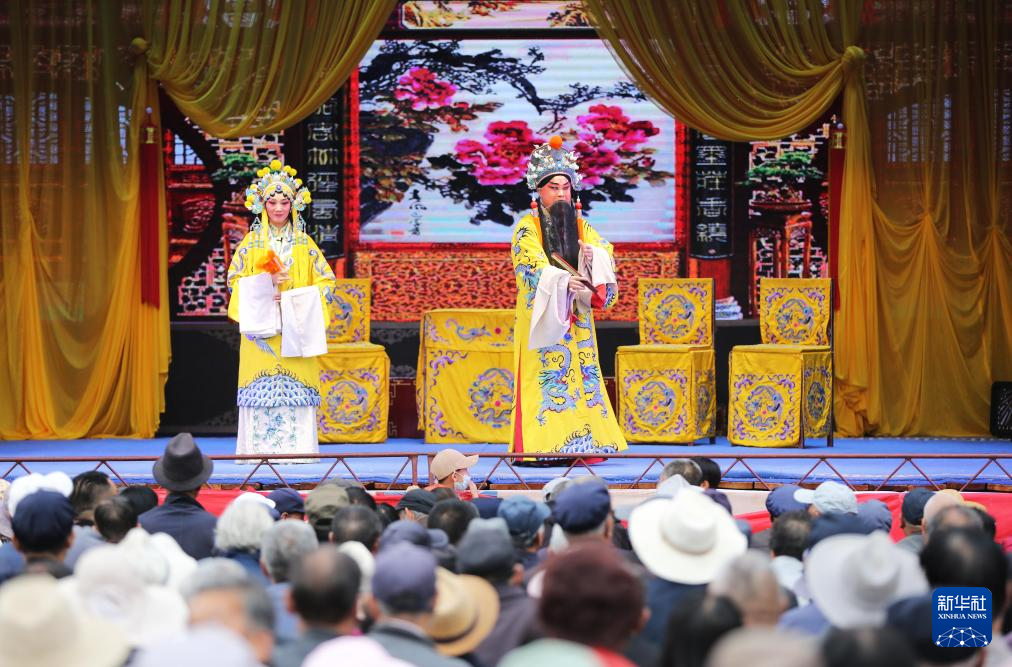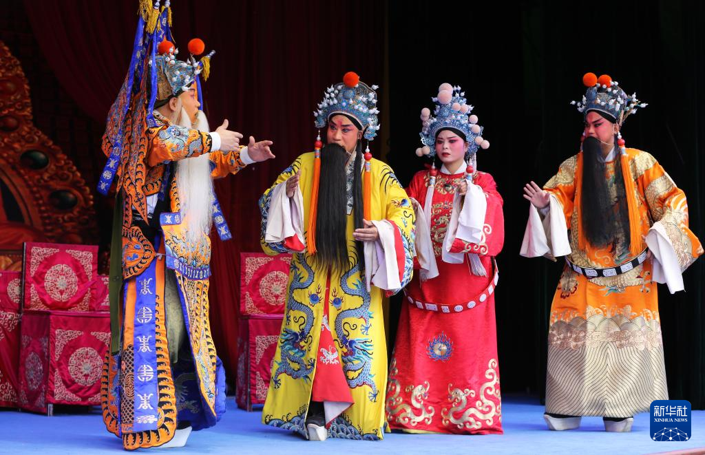 演员在甘肃省定西市体育公园演唱秦腔经典传统剧《周仁回府》(9月21日摄)。